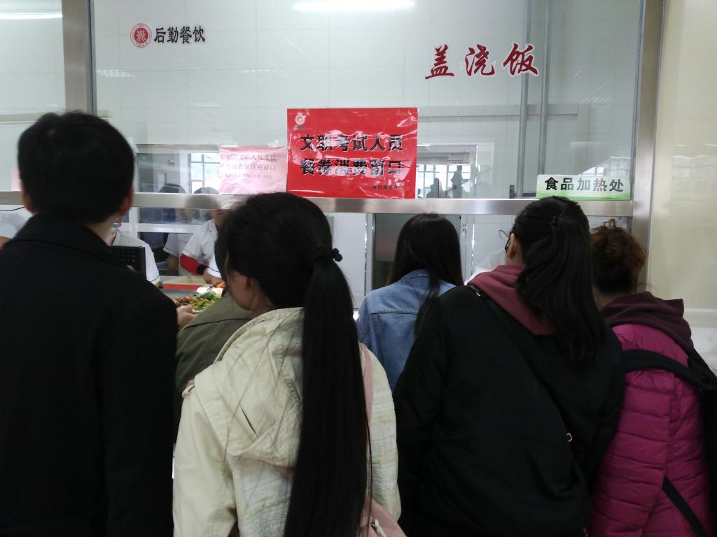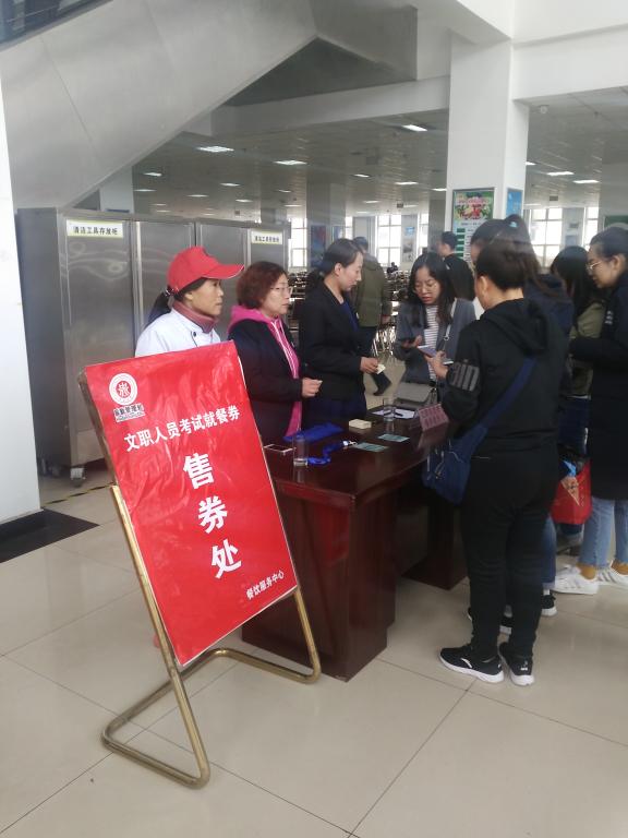 2019年部队面向社会公开招考文职人员的考试,将第136考场设置在了中北大学,这次考试的外来考务人员约300人,考生约达10000人。根据学校的考务工作安排,针对这次部队文职人员选拔考试考生及考务人员就餐的接待任务,餐饮服务中心积极配合学校的考场安排,特意组织了就餐接待工作组,策划出了考务人员在龙泉餐厅自助就餐;针对人数众多的考生,采用发售15元就餐券、考生购券后可以在食堂指定窗口购买面食套餐或米饭套餐的接待形式。餐饮服务中心细致考虑到考生的就餐需求,专门成立了就餐券发放组,分布在餐饮服务中心下属的各个食堂门口,圆满地完成了这次大型接待就餐的任务,得到了参加部队文职人员选拔考试的考生们一致好评。