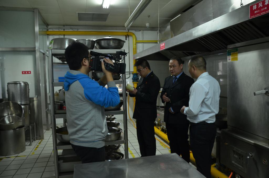 2019年4月30日上午,太原电视台《食安太原》节目组在尖草坪区市场监督管理局上兰站监察人员的陪同下,深入我校后勤管理处录制《食安太原》节目。
