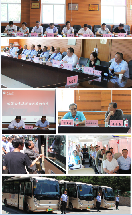 2019年7月7日上午10:00,中北大学与山西博威汽车租赁有限公司“校园公交”项目合同签约仪式在后勤管理处三层会议室隆重举行。副校长雷锋斌、离退休人员老干部代表及我校公交运营相关单位负责人出席了签约仪式。仪式由后勤管理处副处长王晋光主持。