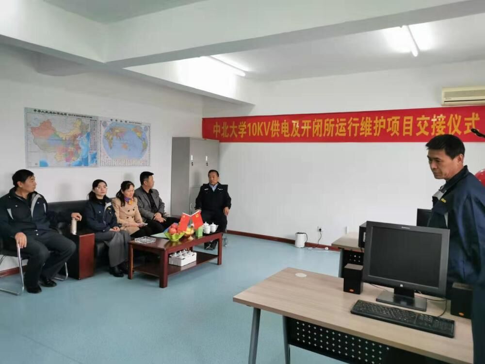 为适应后勤社会化需求,提高服务质量水平,于2019年11月1日上午10时,在新北区变电所会议室召开中北大学与山西国电恒森电力工程有限公司10KV供电及开闭所运行维护项目交接仪式,由动力维修中心贺永胜主任主持,出席仪式有后勤管理处人力资源科科长谢荣芳、经济核算科杨李燕、质量监督科张建文、动力维修中心副主任闫天龙、蔡霆及山西国电恒森电力工程有限公司项目负责人,后勤管理处副处长张騄为本次交接活动作出了重要指示。