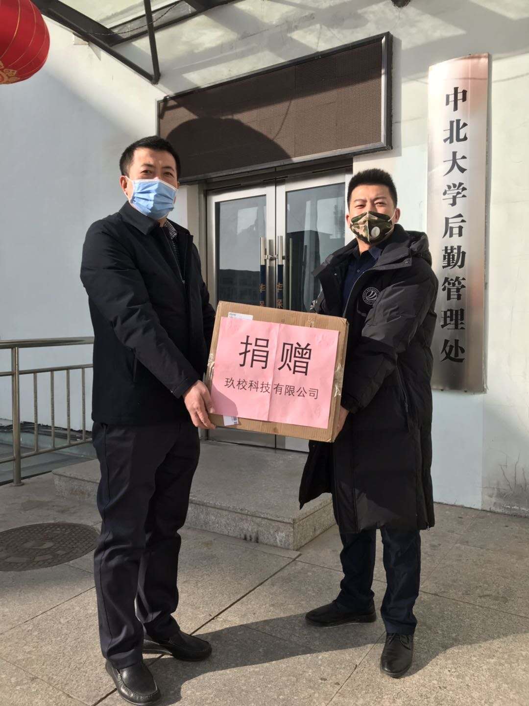 陈建富副处长表示:在防疫物资紧缺的情况下,山西玖校科技有限公司的爱心捐赠、暖心举动,充分体现了主动担当的社会责任感,不仅彰显奉献精神和爱心善意,更如冬日阳光,温暖着每一位坚守在抗击疫情一线的工作者,也更坚定了大家众志成城战胜疫情的信心。随后,后勤管理处会尽快将捐赠物资分发到后勤防疫工作一线,专物专用,更好地为我校打赢新冠肺炎疫情阻击战贡献力量。