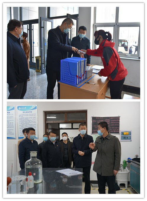张复明副省长一行首先检查了学校门口封闭管理情况,并先后来到后勤管理处物流配送中心、龙山餐厅、文韬6号学生公寓、化学工程与工艺专业实验室、校医院和专门隔离场所等重点部位,实地检查了我校生活物资储备、学生错峰用餐、开学后住宿、学生实验场所、防护物资储备以及学生异常情况处置、留观场所设置等准备情况。每到一处,张复明总要详细询问、了解该部位的工作流程、具体举措和应急措施,并对我校充足的生活物资储备,各学院轮流错峰错时用餐,毕业生写毕业论文和做毕业设计的场所固定化,校医院分诊预诊、隔离场所的设置、接待能力及防疫物资储备等形式多样、实效显著的防护举措,全力以赴为开学做足准备的做法表示肯定。