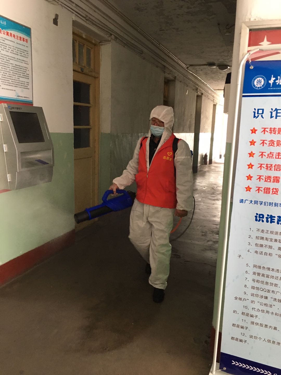 为进一步做好校园疫情防控和毕业生开学准备工作,确保开学后师生的身体健康和生命安全, 4月6日上午,后勤管理处联系山西省消费者协会、山西省室内环境污染防治协会、山西省大爱慈善基金会组织携专业消毒设备及物资,义务对我校公寓楼、食堂等进行专业消毒防疫作业。