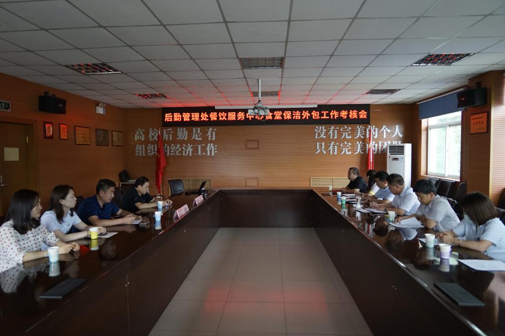 2020年6月30日下午,餐饮服务中心在后勤管理处三层会议室内召开了食堂保洁外包工作考核会。后勤管理处处长杨正民、副处长陈建富、后勤管理处人力资源科、质量监督科、餐饮服务中心负责人、食堂经理代表、太原保城物业管理有限公司的负责人、山西仁慧劳务有限公司的负责人参加了本次会议。会议由餐饮服务中心主任赵剑川主持。