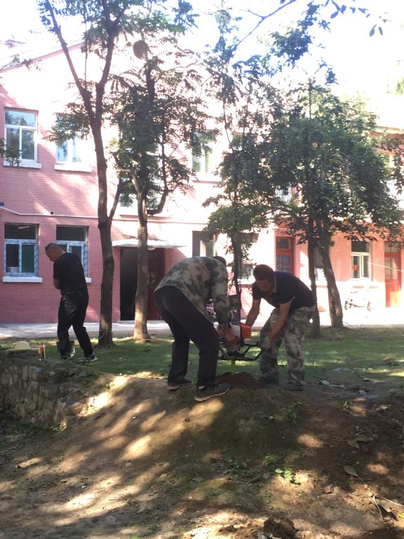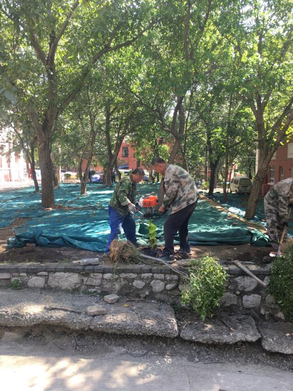 根据学校安排,后勤管理处领导周密部署,校园绿化中心全体工作人员在白主任的带领下齐上阵,加班加点,严格对照创城标准,深入家属区,根据其实际情况制定了相应的绿化实施方案及修剪方案,中心全体工作人员齐心协力,对家属区危枝、枯枝、树叶等进行了集中修剪清理,排除安全隐患,且仅用一天时间就将210棵胶东卫矛球种植完毕,校园内环境从而得到了很大的提升。