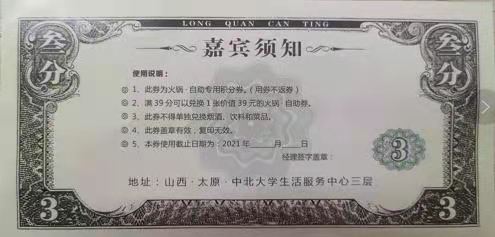 凡在龙泉自助区就餐“光盘”者即可领取一张价值3元的光盘奖励券1张,下次就餐立减3元,可叠加使用。