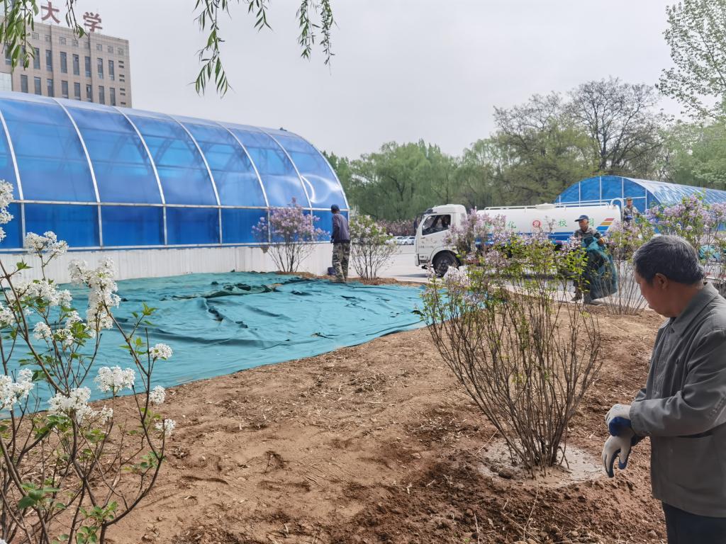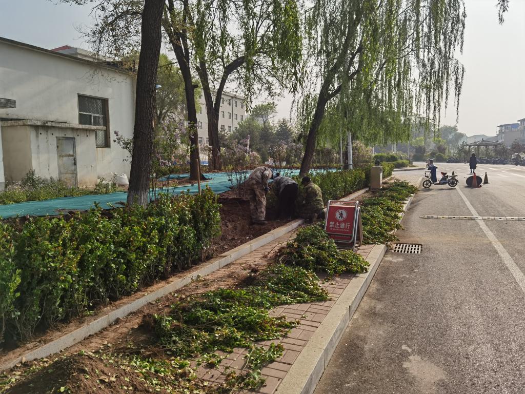 高标准栽植,为我校南环路段又添一道新绿,更好的提高了整体绿化质量,为建党100周年及我校80周年校庆画上浓墨重彩的一笔。