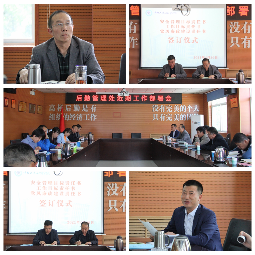 会上,主管领导与分管领导之间、分管领导与所负责中心(科室)之间举行了本年度后勤管理处《安全管理目标责任书》、《工作目标责任书》、《党风廉政建设责任书》的签订仪式。