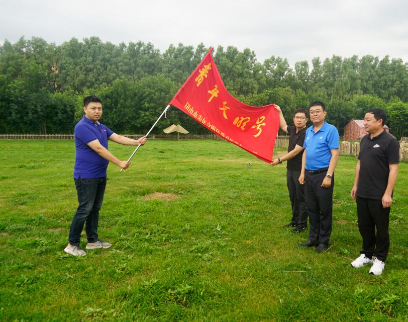 随后进行了授旗仪式,张騄副处长、白利波主任和蔡霆副主任共同为贾天宇号长授旗,贾天宇号长带领电工班全体人员进行了宣誓。