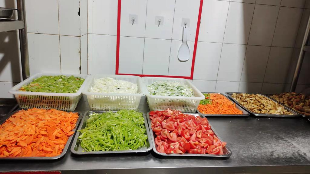 近日餐饮服务中心邀请在校学生代表深入食堂后厨,对食堂的环境卫生、工作流程、服务标准实地参观了解。学生代表主要参观了切配间、炒制间、库房、售饭台等,食堂工作人员对食材切配如何按照流程去做,如何处理剩余饭菜、如何消杀等进行全程解说。活动结束后,学生代表对学校目前的餐饮工作有了大致了解,亲身感受到后勤餐饮工作的忙碌与专业,更加珍惜劳动成果,并对员工的辛苦劳动表示感谢。