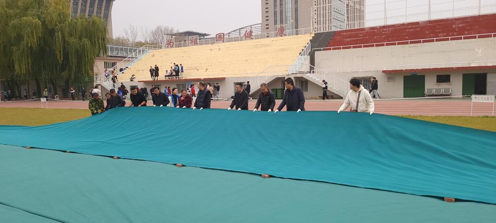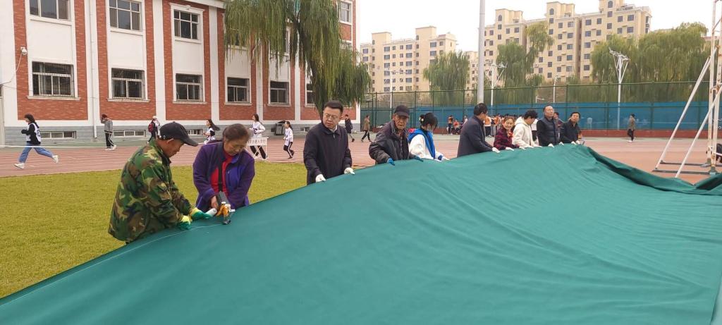 值寒冷来临之际,为了确保来年草坪足球场的正常使用,第一党支部全体党员到我校田径场,开展了为草坪覆盖防冻布的育人劳动。劳动现场党员同志们兵分多路,弯腰搬砖块、手持缝包机、扯盖布、翻盖布等,大家不怕脏不怕累,一个个干得热火朝天,通过大家齐心协力,为我校田径运动场的草坪盖上了一层冬季防寒保护“装”。 劳动间,大家对习近平总书记关于劳动教育的有关论述边干边议,边干边悟,在学思践悟中更加深刻地理解了习近平总书记关于新时代劳动教育论述的思想内涵和实践要义。
