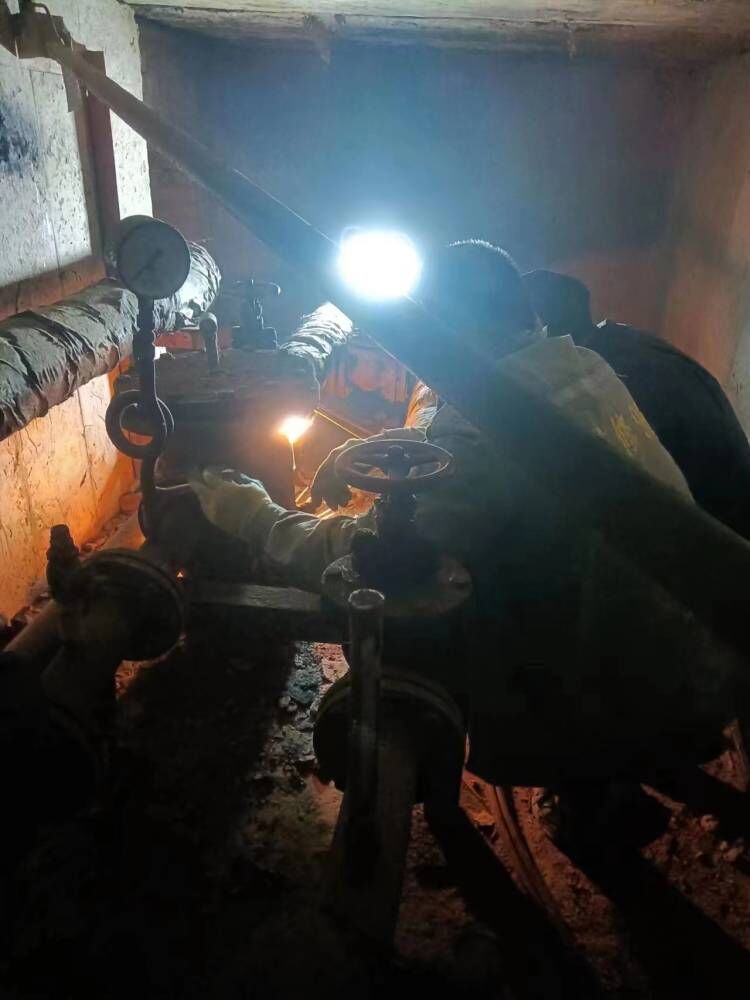 11月4日,学校采暖二次管网北线主管道突然破裂,导致我校西区家属楼、附属学校、部分学生公寓无法供暖,动力维修中心紧急展开抢修工作,由于管道坑底层已经成了泥浆,无法清理。工人师傅们就穿着胶鞋,跳下水坑中进行抢修。晚上寒流来袭,此时坑中的水又凉又冷,大家在寒风和冷水中,抢修了十来个小时,终于完成了抢修工作。