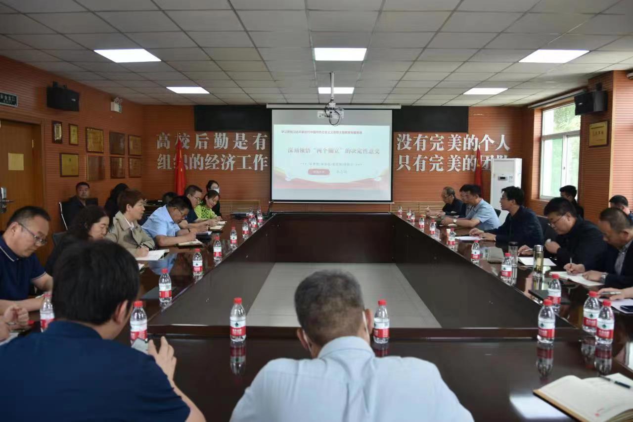 来志斌副校长深入解读了《中共中央关于党的百年奋斗重大成就和历史经验的决议》和《中国共产党第二十次全国代表大会关于十九届中央委员会报告的决议》,并从“两个确立”是马克思主义建党学说的创新发展、“两个确立”是党百年奋斗成功经验的历史总结、“两个确立”是新时代新征程团结奋斗的根本保证、深刻领悟“两个确立”坚决做到“两个维护”等四个方面进行了详细阐述。