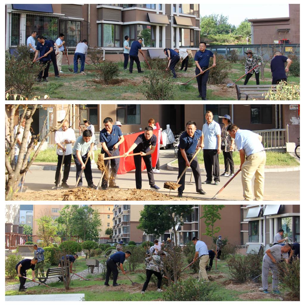 6月29日下午,为喜迎“七一”,后勤管理部党总支组织全体党员举行“履使命、践宗旨、作表率、靓家园”主题教育之植树志愿服务活动。活动现场为怡丁苑家属楼区域,部领导班子成员做表率,带领全体党员清理树坑池及周边石头、杂物,整理栽植植物、挥锹填好土、铲运垃圾至指定位置等。活动中,全体党员热情澎湃、干劲十足,充分发扬齐心协力、团结互助的团队精神,经过一个多小时的共同努力,该片花园之地初具雏形。