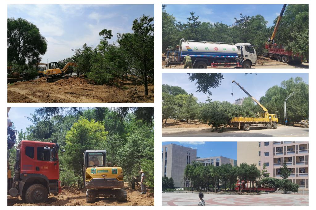 七一前夕,经学校积极争取,太原市园林科创服务中心为我校免费调拨了一大批珍贵树种。校党委书记沈兴全、校党委副书记雷锋斌、副校长来志斌多次带队实地考察校内各栽植地点,商讨建设细节,细化移栽方案,并针对当前夏季炎热和异地移栽树木难度较大等问题,要求后勤管理部要抓住本次绿化契机,积极协调处置,克服困难,全力以赴做好此次绿化移植工作。