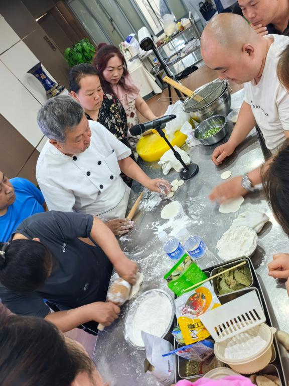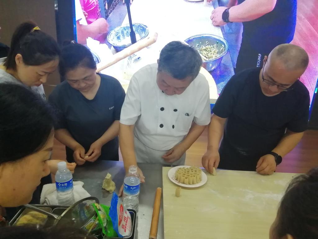 本次培训由西式面点高级技师巩利文、金牌面点技师徐根源、国家资深级面点大师、走进联合国申遗大师、高级面点技师、资深级注册中国烹饪大师刘当成主讲。培训期间学习了脆皮闪电泡芙、软化吐司、流行甜面团等多种西式点心和韩国鸡丝冰拔面、日本特制白丸面、上海黄鱼面、晋中桃花面、菌汤剪刀面等10多种面食的制作技艺及卤的烹调方法以及百千金丝一窝酥、晶莹剔透素翅饼、形象逼真土豆包、酥软香甜炸蜜酥等面点。在培训期间尤其是刘当成大师的授艺,让学员们经常是掌声不断,他生动的讲解和亲切的互动,让学员们短时间内掌握了20多种中式面点的关键核心技术,他精湛的技艺更是让人连连叫绝,口水四溢,脑洞大开,培训短暂结束,场景久久难以忘怀…