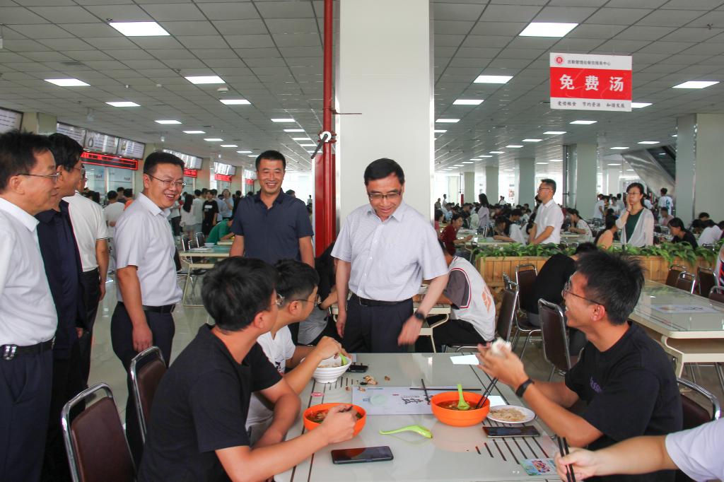 9月3日,正值学生报到返校的集中时段,校党委书记沈兴全、校长陈钱深入学生食堂对开学前供餐准备工作进行检查指导。校领导雷锋斌、贾维河、来志斌、尹建平参加。