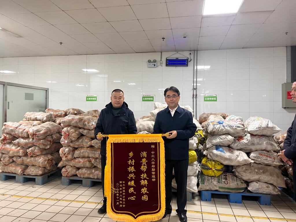 11月8日上午,中北大学、太原市科技局、西凌井乡人民政府在中北大学后勤管理部物资配送中心举办“结对帮扶解难题 携手同行促振兴”帮扶活动。
