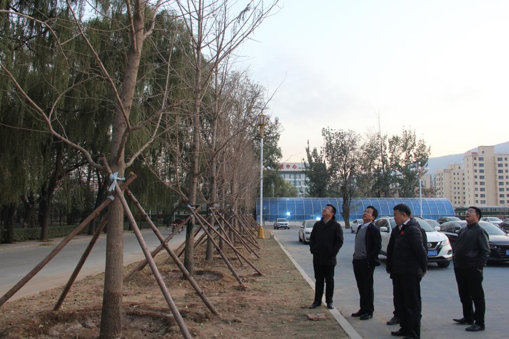 为确保该项绿化工作高效完成,后勤管理部校园绿化中心严格按照校领导的安排及部领导的部署,从前期设计、挖坑、回填种植土、选苗、起苗、装车、种植及后期养护等一整套流程出发,后勤管理部领导带队对银杏树进行了实地考察,并全程参与、安排和指导;校园绿化中心负责人带领中心全体人员加班加点,不惧困难,确保栽植工作的每一个环节稳步进行。