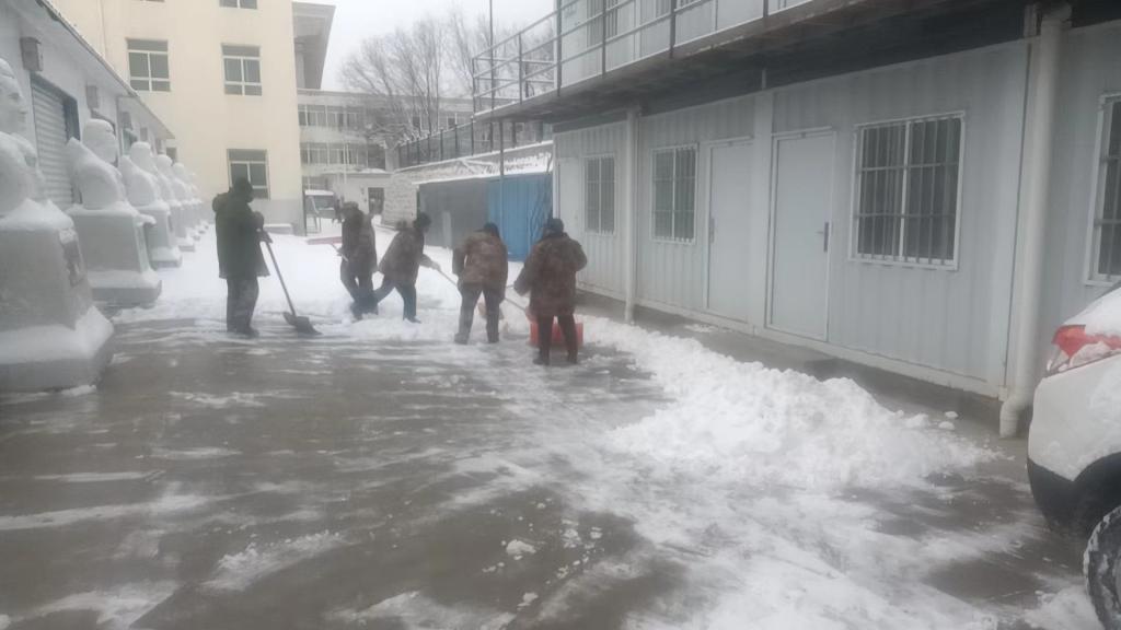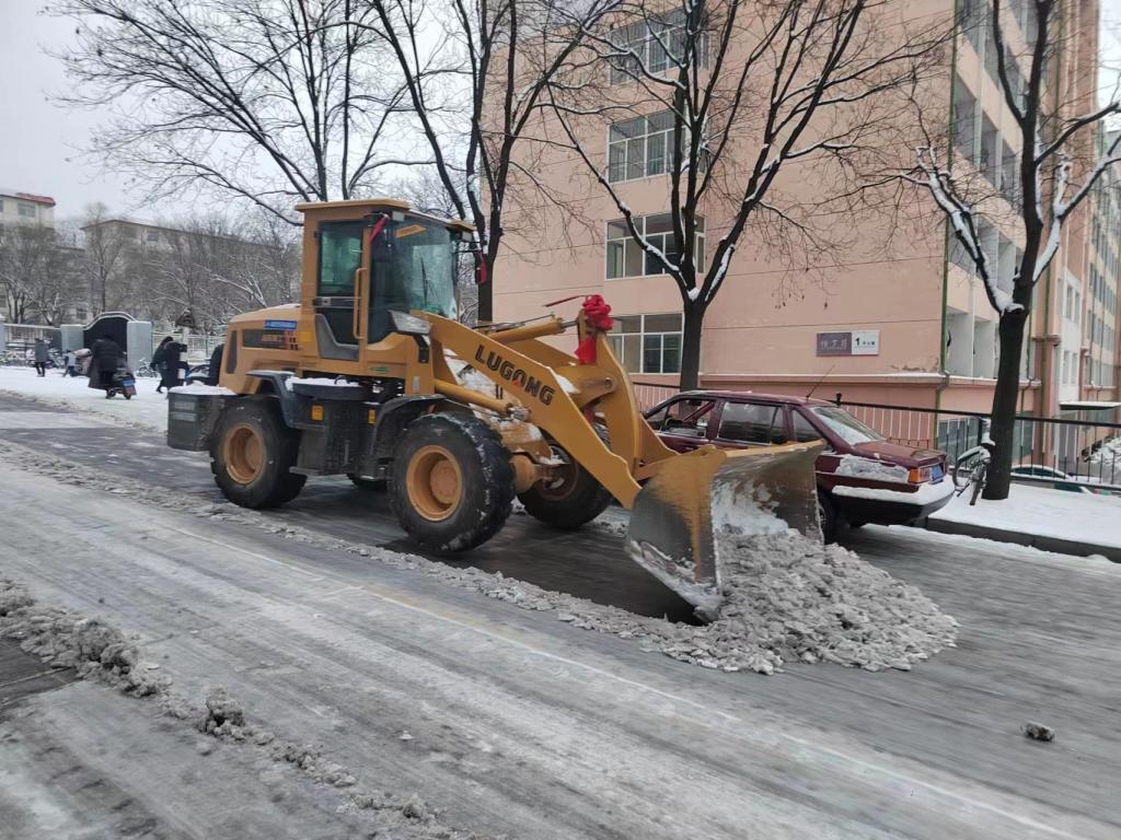 各单位积极响应,党员干部、职工、志愿者等纷纷参加。后勤管理部组织相关人员,启动铲车铲除主要干道积雪,大家不畏严寒,分工明确,干的热火朝天,经过一上午的努力,将主要干道积雪清扫完毕。