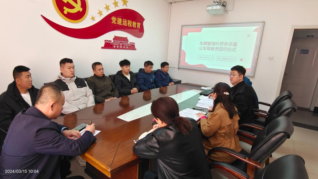 2024年3月15日,车辆管理科在后勤管理部三层会议室召开“车辆管理科劳务派遣公车驾驶员签约仪式”,人力资源科、公车驾驶员、山西晋鑫仁和人力资源管理有限公司参会,会议由车辆管理科科长王芳主持。