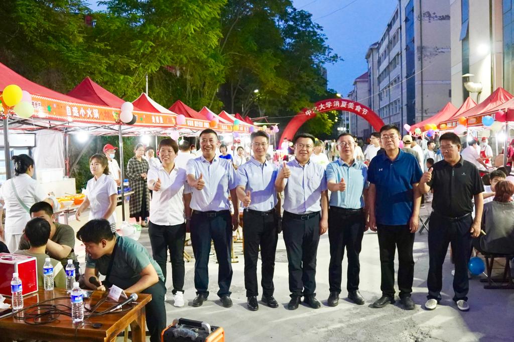 此次“消夏美食文化节”得到了学校多个领导们的大力支持,机电工程学院赵永娟书记、刘光副书记;计算机科学与技术学院副书记杨晓东;人文社会科学学院副书记王晓东;软件学院副书记高宏图;环境与安全工程学院副书记张少明;国际教育学院副书记刘晓玲;后勤管理部党总支书记李耀明、张騄副部长、陈建富副部长、宣传部张弘老师等莅临本次活动。