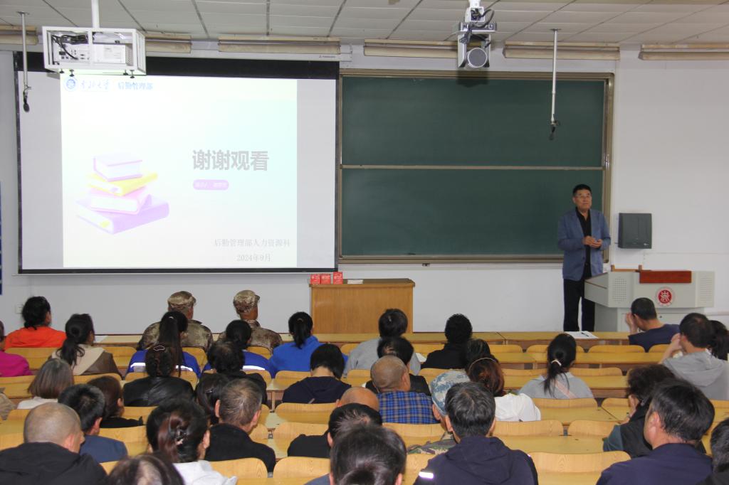 9月27日下午,后勤管理部人力资源科在教学8号楼1层08102H教室成功举办了2024年秋季学期新员工基础性培训,培训由人力资源科负责人谢荣芳主讲,后勤管理部各部门本学期100余名新入职的员工参加了本次基础性培训。
