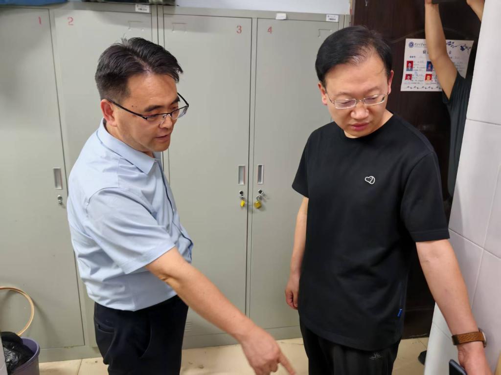 视察过程中,尹建平副校长一行先后前往学生宿舍、食堂等重点区域,实地查看毕业生房间粉刷、卫生间改造、消防设施维护、水电线路检修等多项维修工程的进展情况。每到一处,尹校长都仔细询问施工进度、材料质量及安全防护措施,认真听取后勤管理部关于暑假维修工作整体安排、项目推进情况的汇报,对维修团队克服高温天气、高效推进工作的成效给予肯定。
