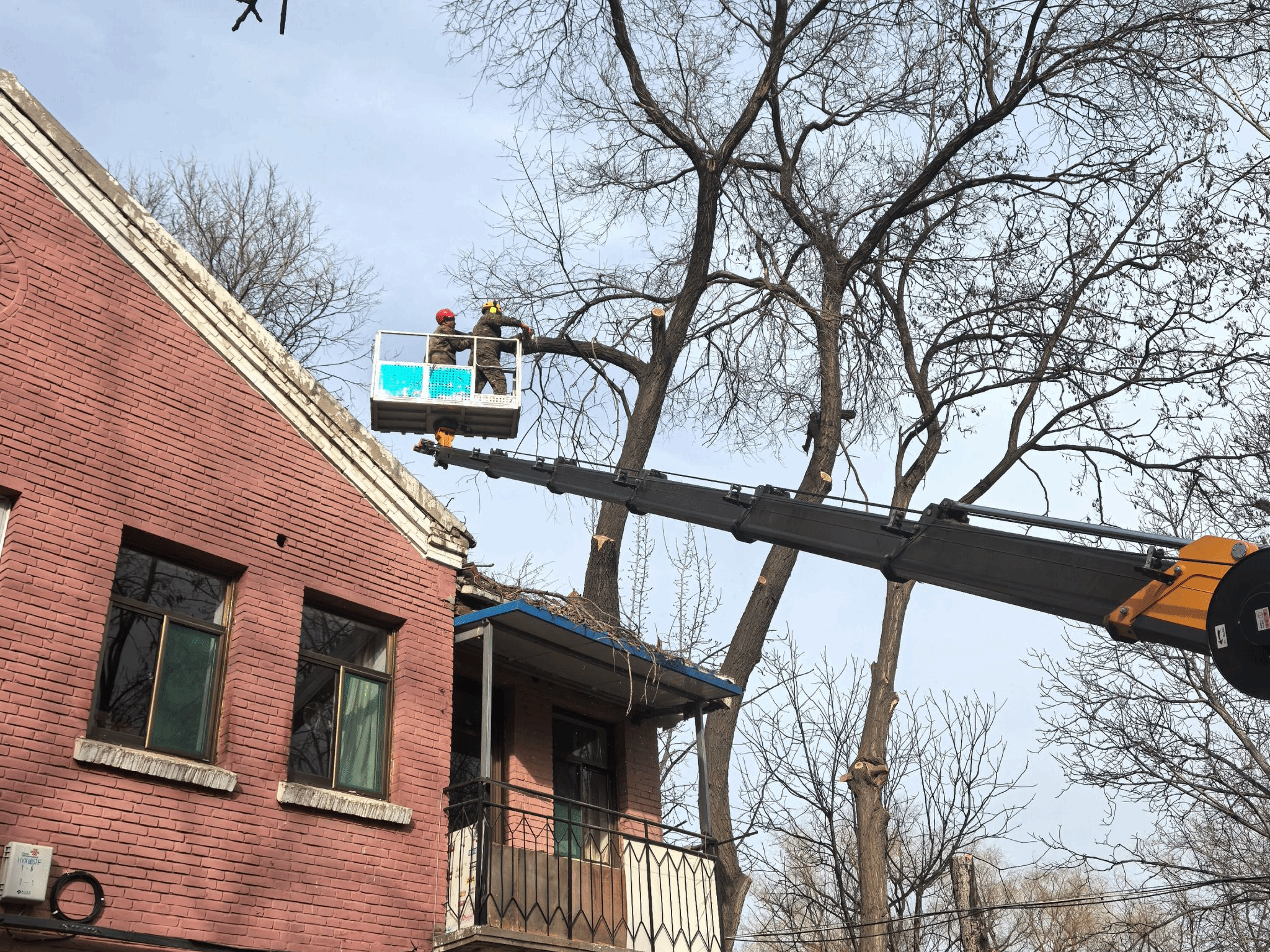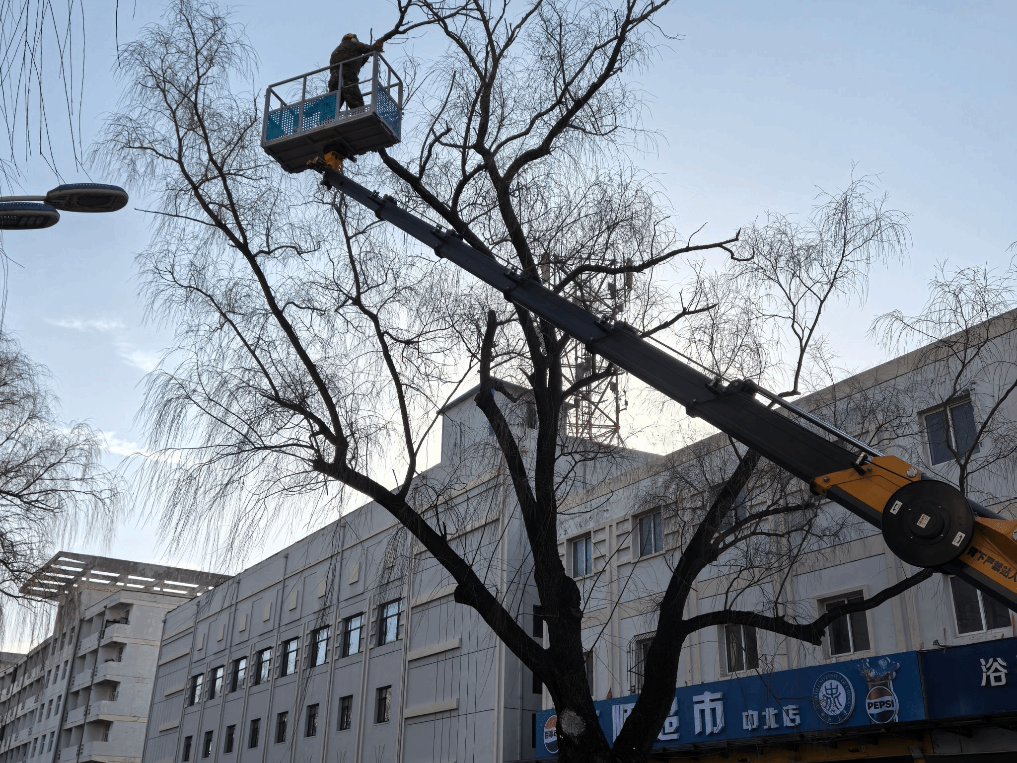 春节前夕,中北后勤校园环境与物业服务科组织绿化组,对校园主干道、家属区、教学楼周边高大乔木开展高空修剪专项作业。