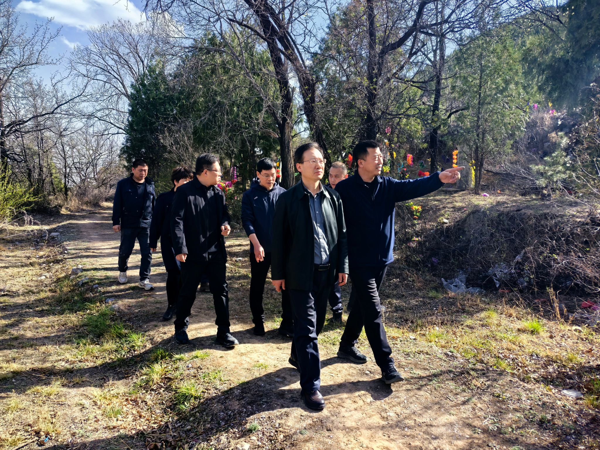 当日,后勤管理部党总支书记杨湖与部长宋睿分别带队,副部长及相关科室负责人共同参与,组成联合检查组,先后深入二龙山祭扫区域、校园电动车集中停放点、学校主楼及绿化核心区域等重点部位,围绕清明防火、设施安全、交通秩序、环境提升等方面开展实地检查。
